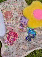 Approximately 2.5 inch Acrylic featuring your favorite oshis from Hololive!